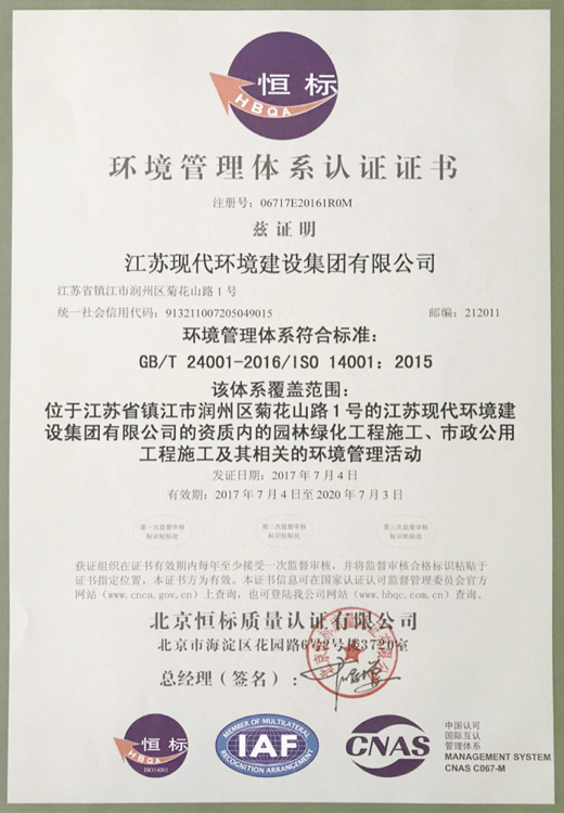 我公司榮獲“環(huán)境管理體系認(rèn)證”證書