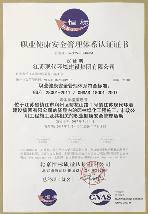我公司榮獲“職業(yè)健康安全管理體系認證”證書